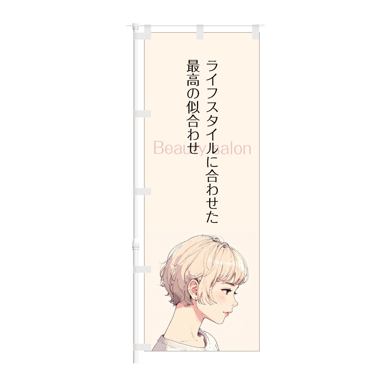 【 ライフスタイルに 合わせた 似合わせ 美容室 】のぼり旗です。