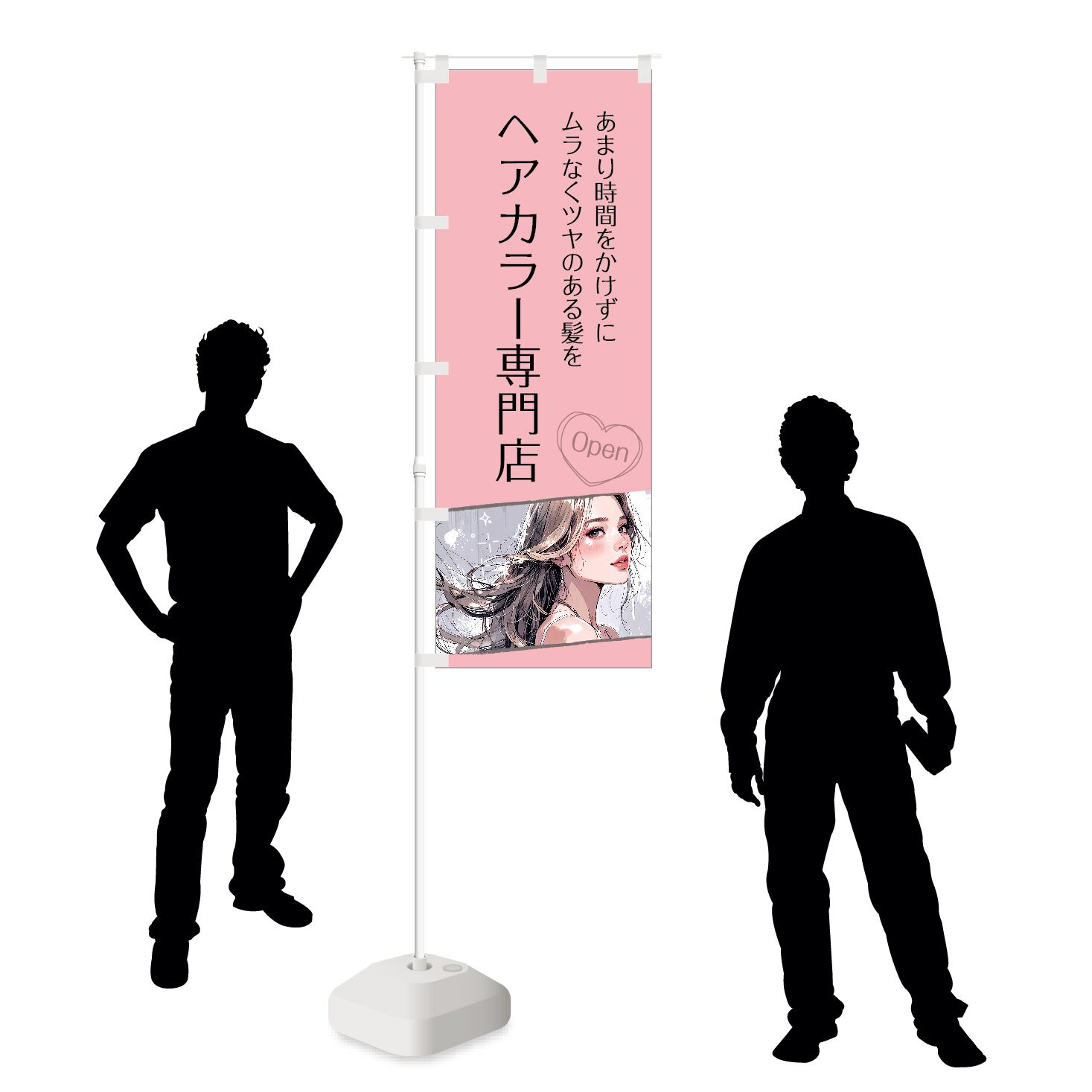 のぼり旗【 時間をかけずに ムラなくツヤのある髪を ヘアカラー専門店 】NOB-KT0982 幅650mm ワイドモデル!ほつれ防止加工済! 1枚入