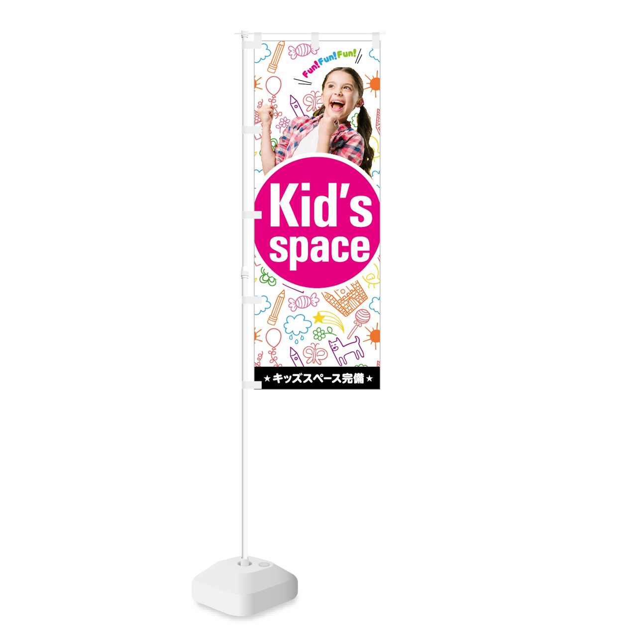 【 Kid's space キッズスペース完備 】のぼり旗です。