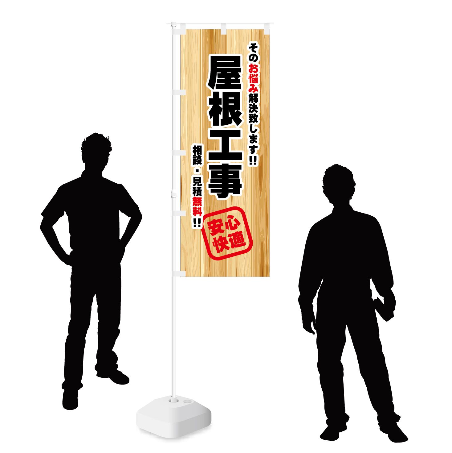 のぼり旗【 そのお悩み解決致します 屋根工事 安心快適 】NOB-ON0092 幅650mm ワイドモデル!ほつれ防止加工済 工務店・リフォーム会社の集客に最適! 1枚入
