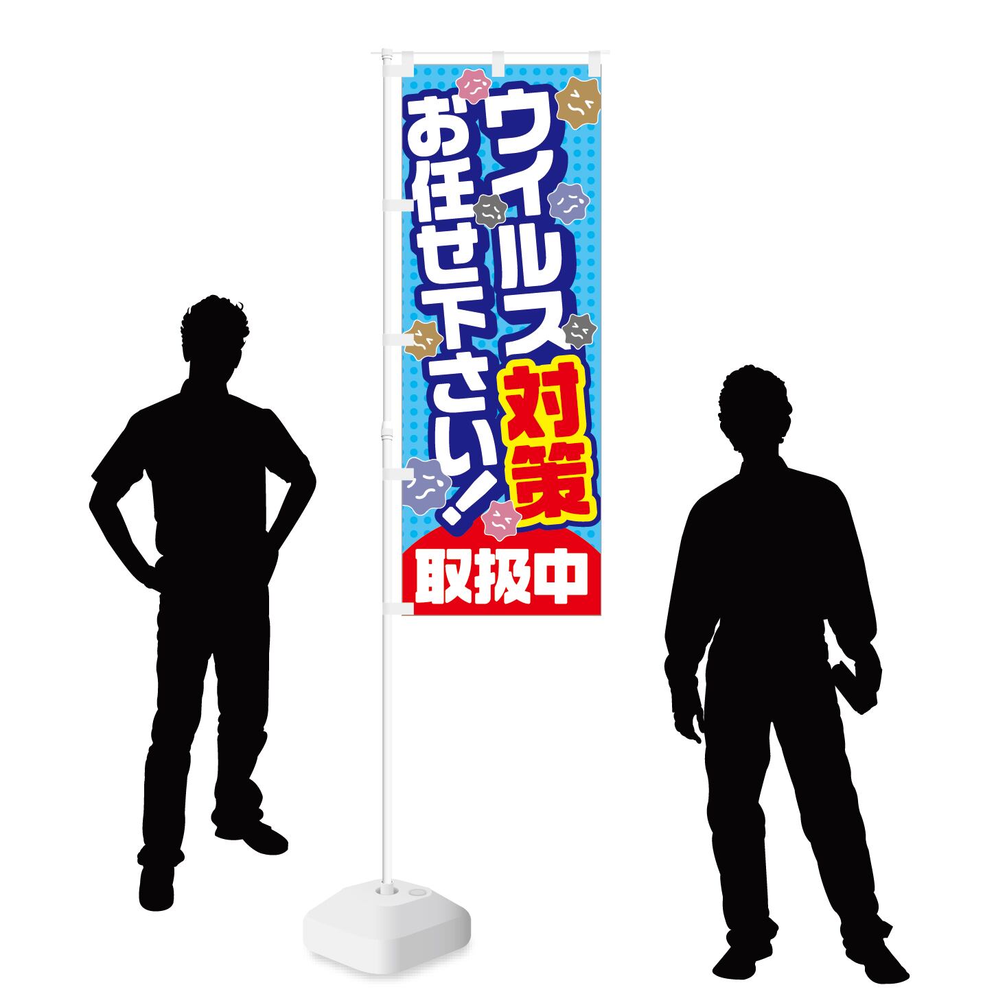 のぼり旗【 ウイルス対策 お任せください 取扱中 】NOB-NT0014 幅650mm ワイドモデル!ほつれ防止加工済 ドラッグストアでの除菌製品の販促に最適! 1枚入
