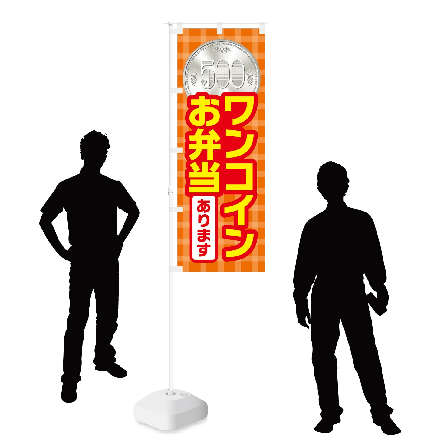 【 ワンコイン お弁当 あります 】のぼり旗です。